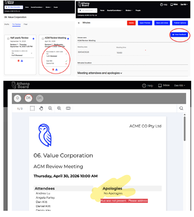 This allows chosen board members or executives to review and mark up the draft before it is finalised.